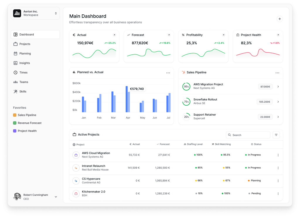 Aerion ist die erste skill-basierte PSA-Lösung für moderne Teams. So planst, besetzt und lieferst du zuverlässig.