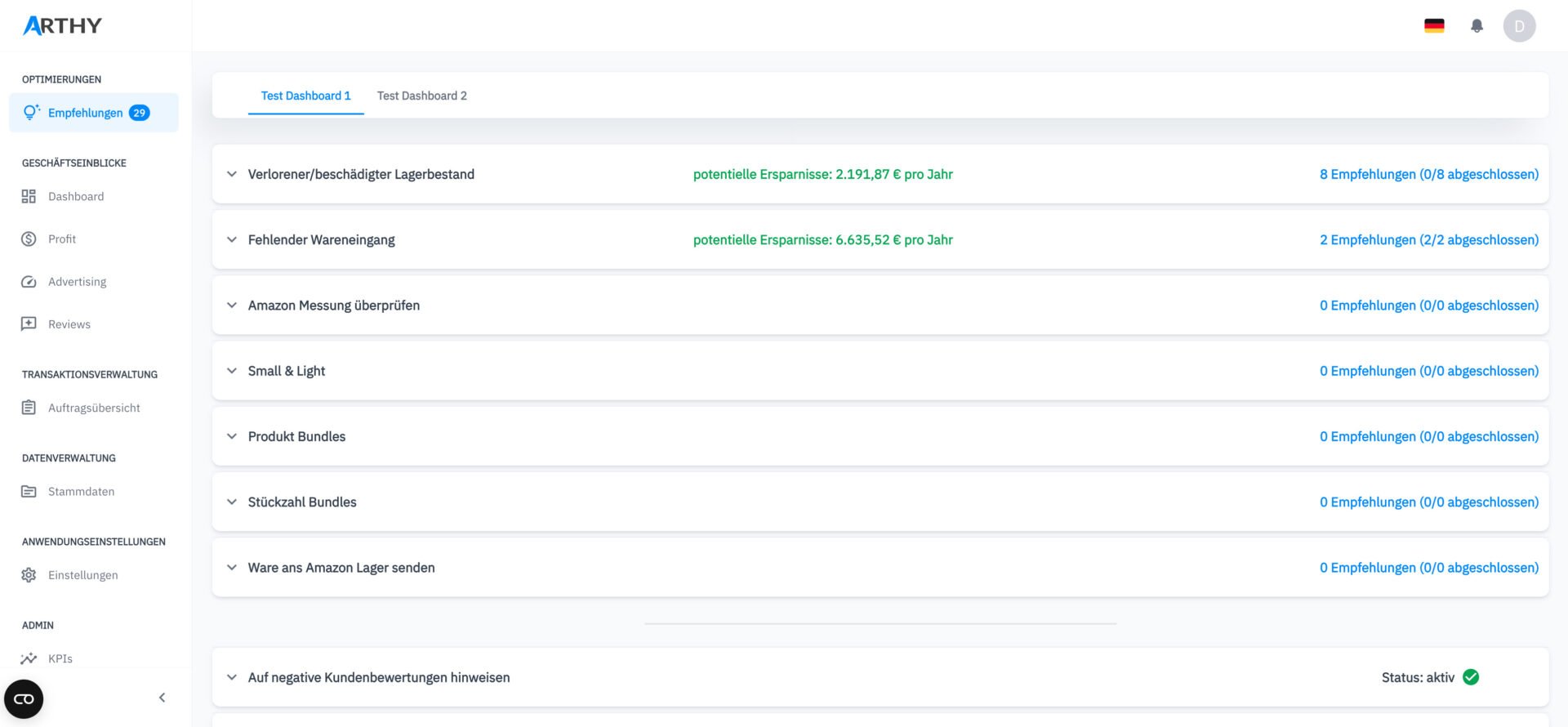 Spare sofort Geld und Zeit durch den Einsatz von Arthy. Verpasse außerdem keine wichtigen To Do’s.