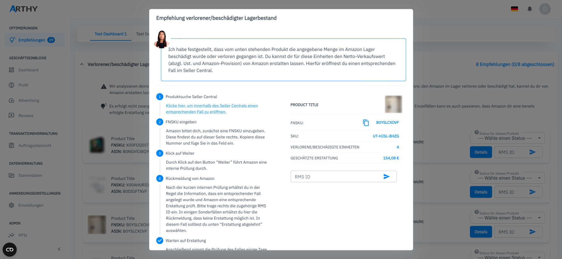 Ich kümmere mich für dich um verlorene oder zerstörte Produkte, Kundenbewertungen, Rückerstattungen und vieles mehr und überprüfe dabei stets deine Produkte und deren Optimierungspotenzial.