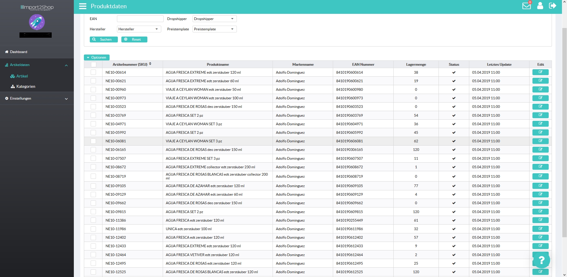 Import2Shop ist ein modernes PIM- (Product-Information-Management) und PDM (Product-Data-Management) mit dessen Hilfe Sie Ihre Produktdaten in einer zentralen Oberfläche verwalten. Durch den hohen Grad an Automatisierung, werden Ihnen manuelle Artikelimporte und händische Bestandsupdates vom Großhandel/Hersteller abgenommen.